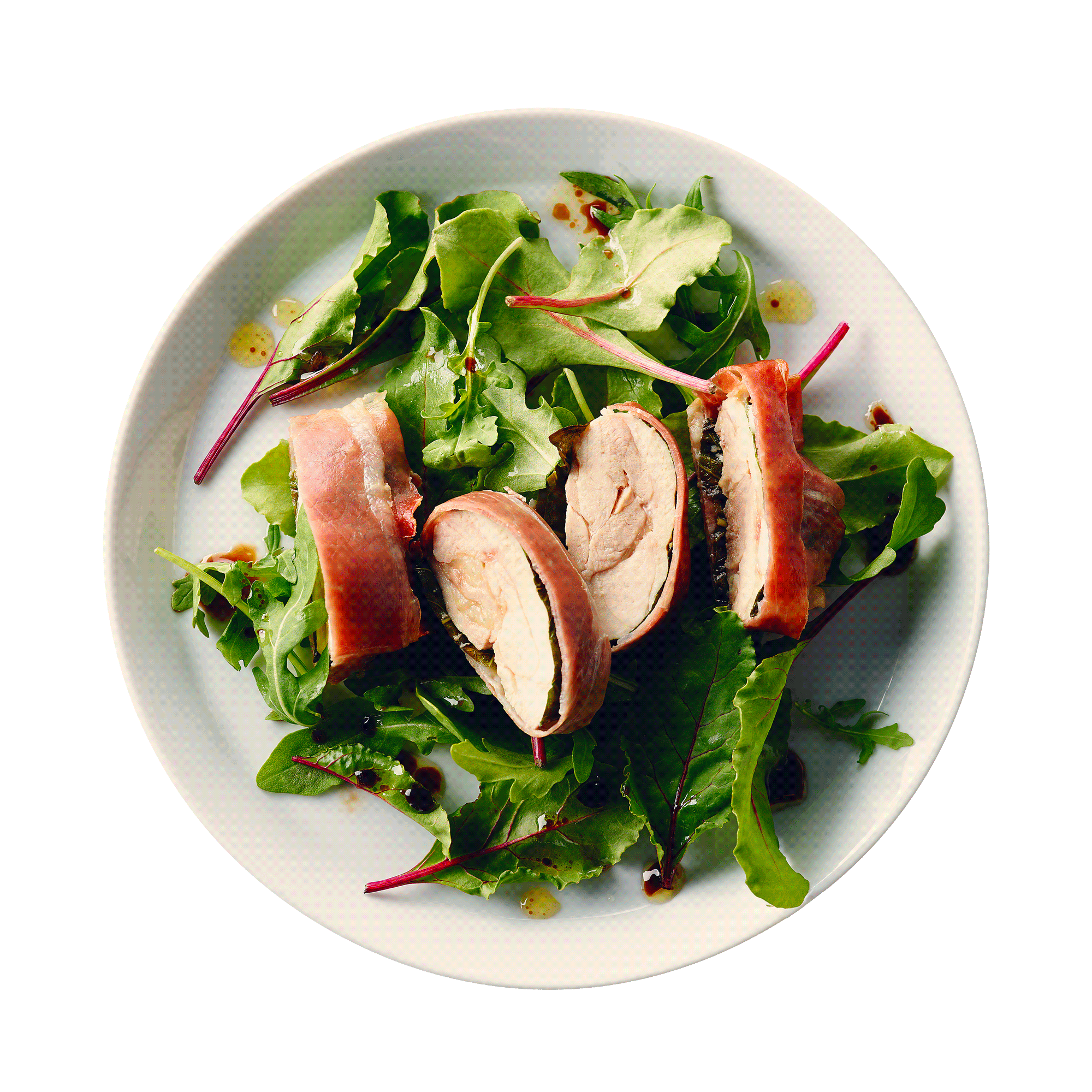 Prosciutto & Basil Wrapped Chicken Over Greens